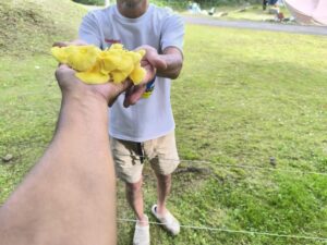 野営場に戻ると、どこからかウクレレの音が聞こえます。