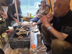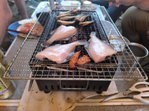 一昨日、亜矢おとうさんとテラちゃんが相泊漁港で釣って来たサカナが網の上に乗ります。