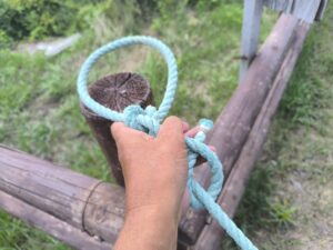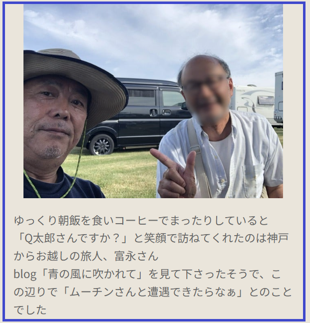 ウスタイベキャンプ場でQちゃんに声を掛け、