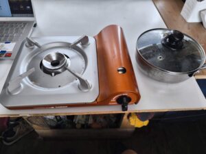 そして、かれこれ50年前に買った山用のコッフェルを捨てて、鍋兼用小型厚底フライパンを買い、コンロも新しくしました。
