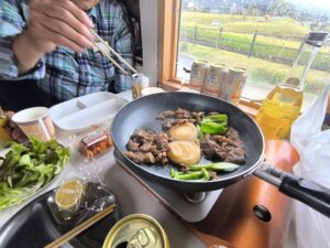 明日はオレが道の駅のレストランでごちそうするから4時に集合ね