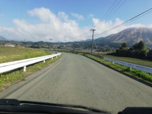 阿蘇の外輪山の内側をゆっくりと走ります。