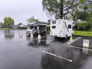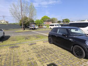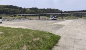 さらに南に走り、河川敷の駐車場で昼食にします。