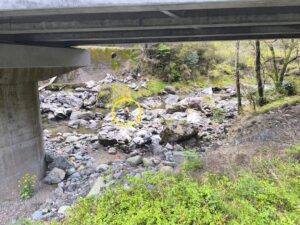 昼食を食べ終わり下を覗いてみると釣り人がルアーであちこち探ってます。